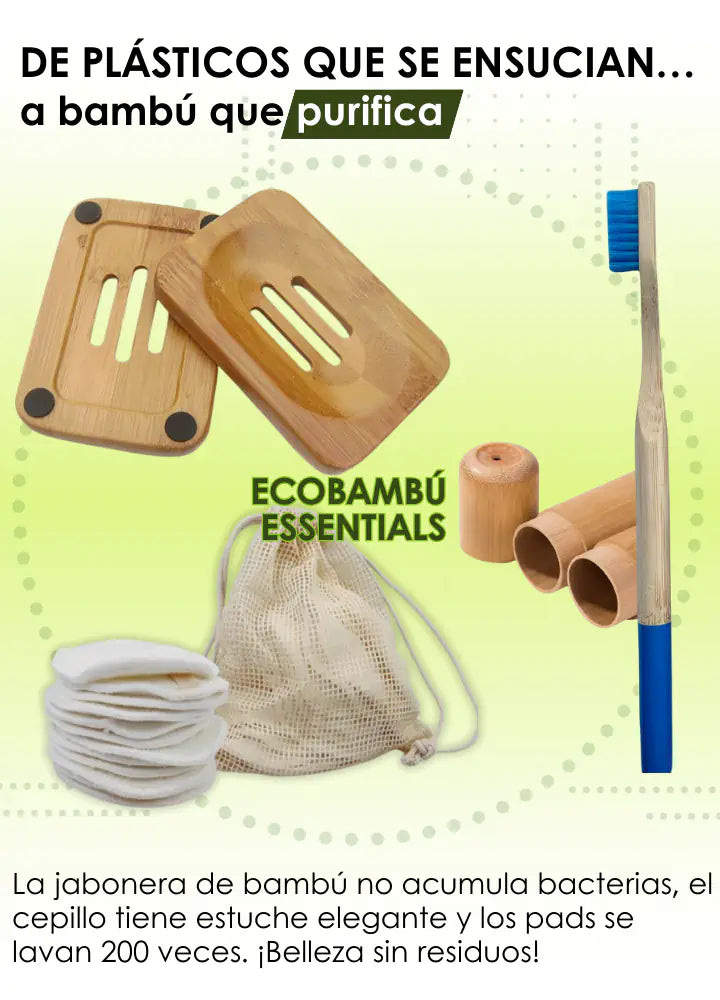 1 jabonera, 1 cepillo premium con estuche, y un kit de pads desmaquillantes en fibra de bambú. 🎁
