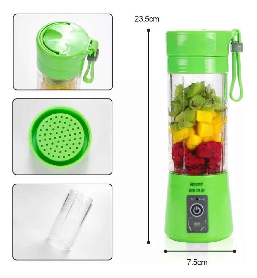 Velocidad rápida, puede hacer una taza de jugo o batido en 1 minuto, es fácil de cargar la batería via USB